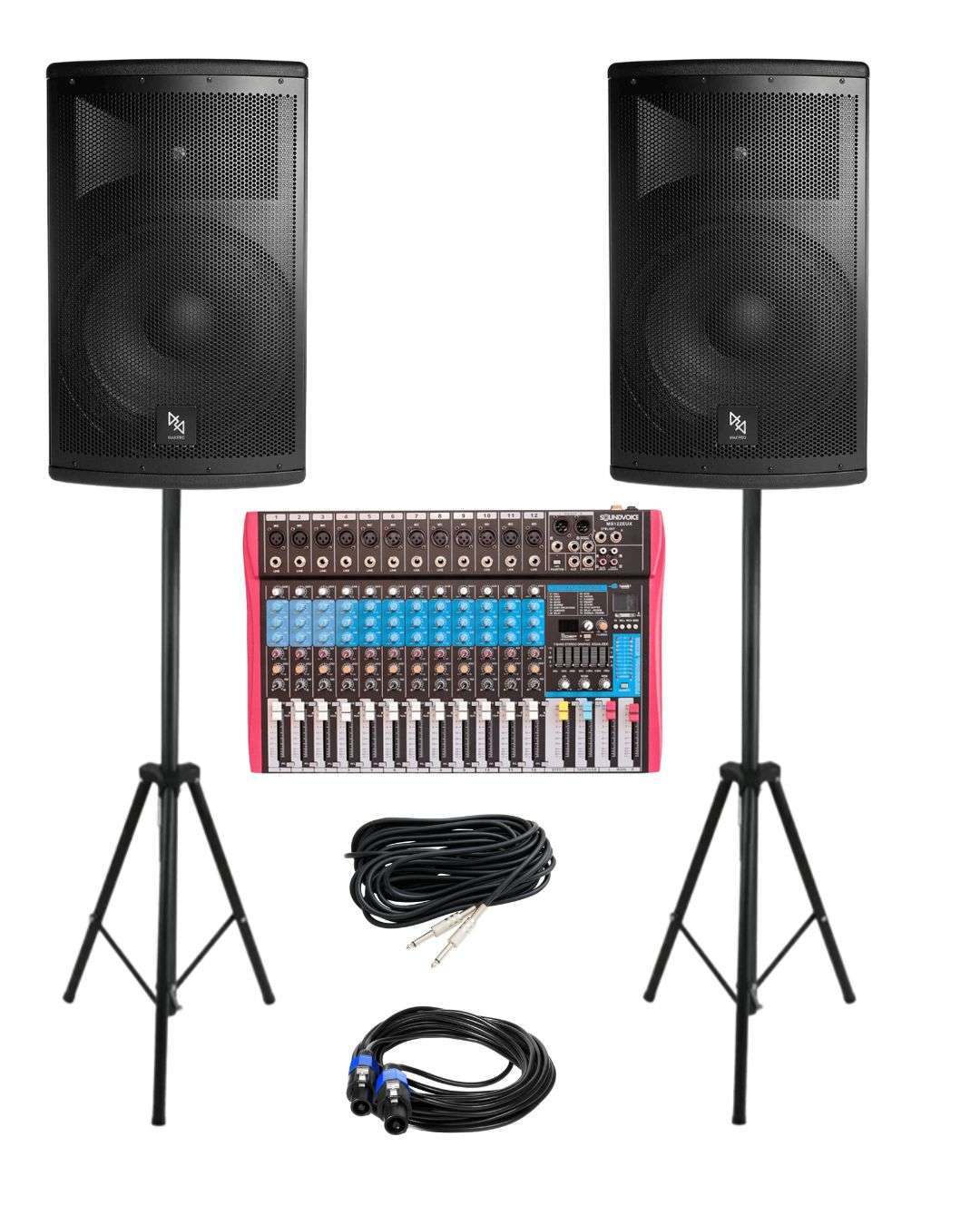 As caixas MAK PRO MK-15 (Ativa e Passiva) são a base de força do kit. Com a interligação pelo cabo Speakon de 10m, o sistema opera com impressionantes 700W RMS de potência limpa e confiável, ideal para grandes eventos onde o volume e a clareza são inegociáveis.