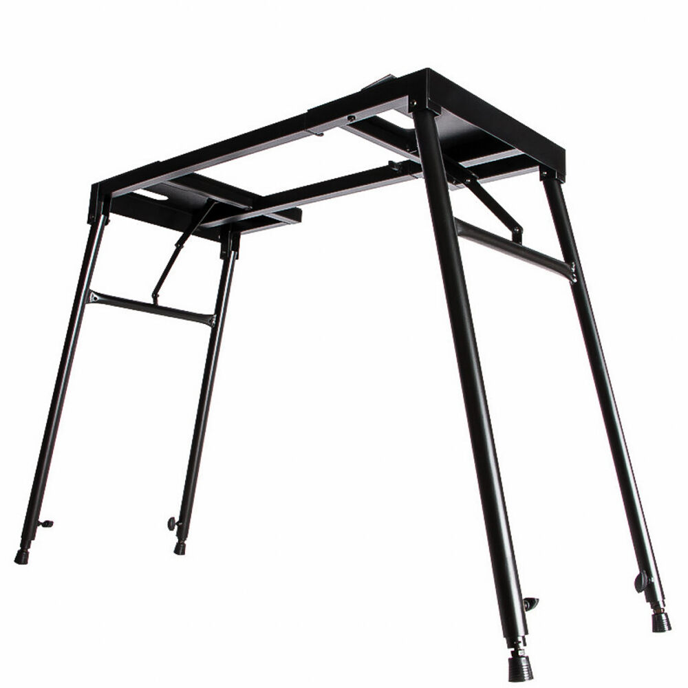'Um suporte extremamente forte| Este modelo totalmente ajustável é uma grande opção para músicos que precisam de suporte para teclados grandes, pianos elétricos vintage pesados ou equipamento para DJ. O Extensor para 2º Teclado KSA7500 pode ser encaixado, fazendo deste um suporte para dois teclados|